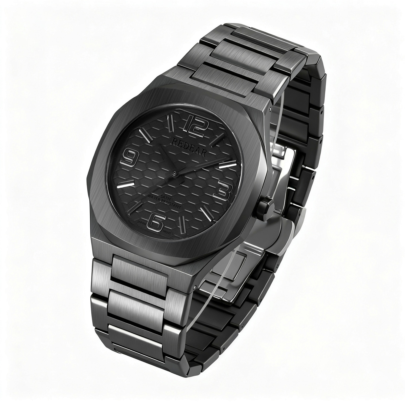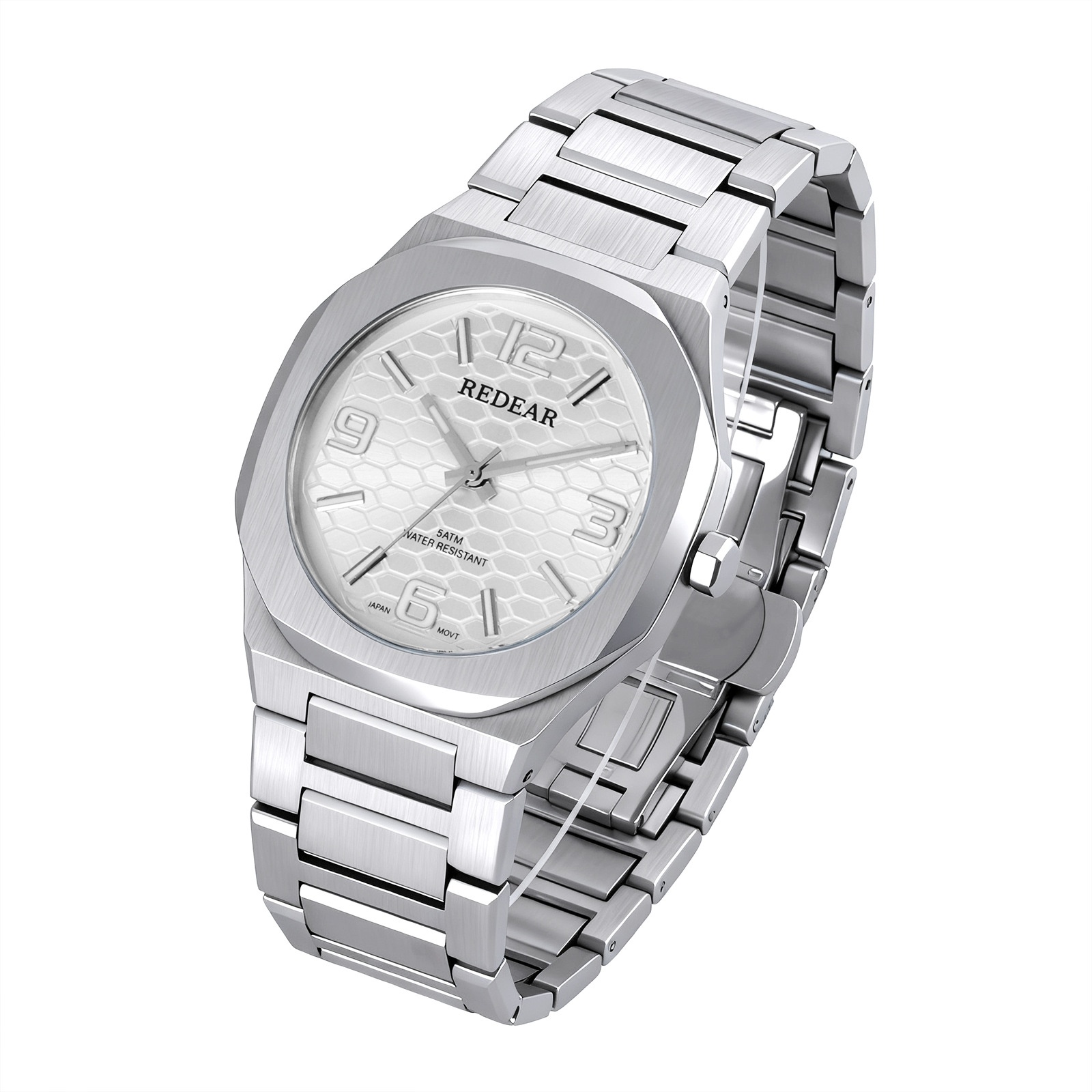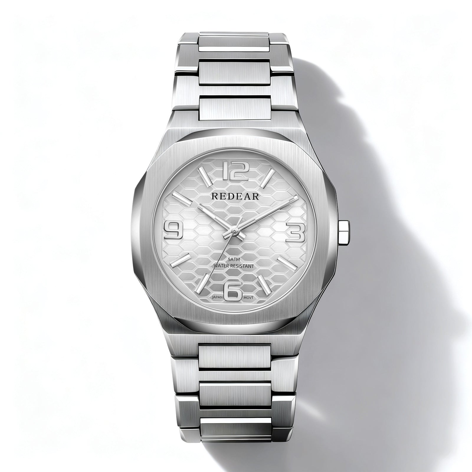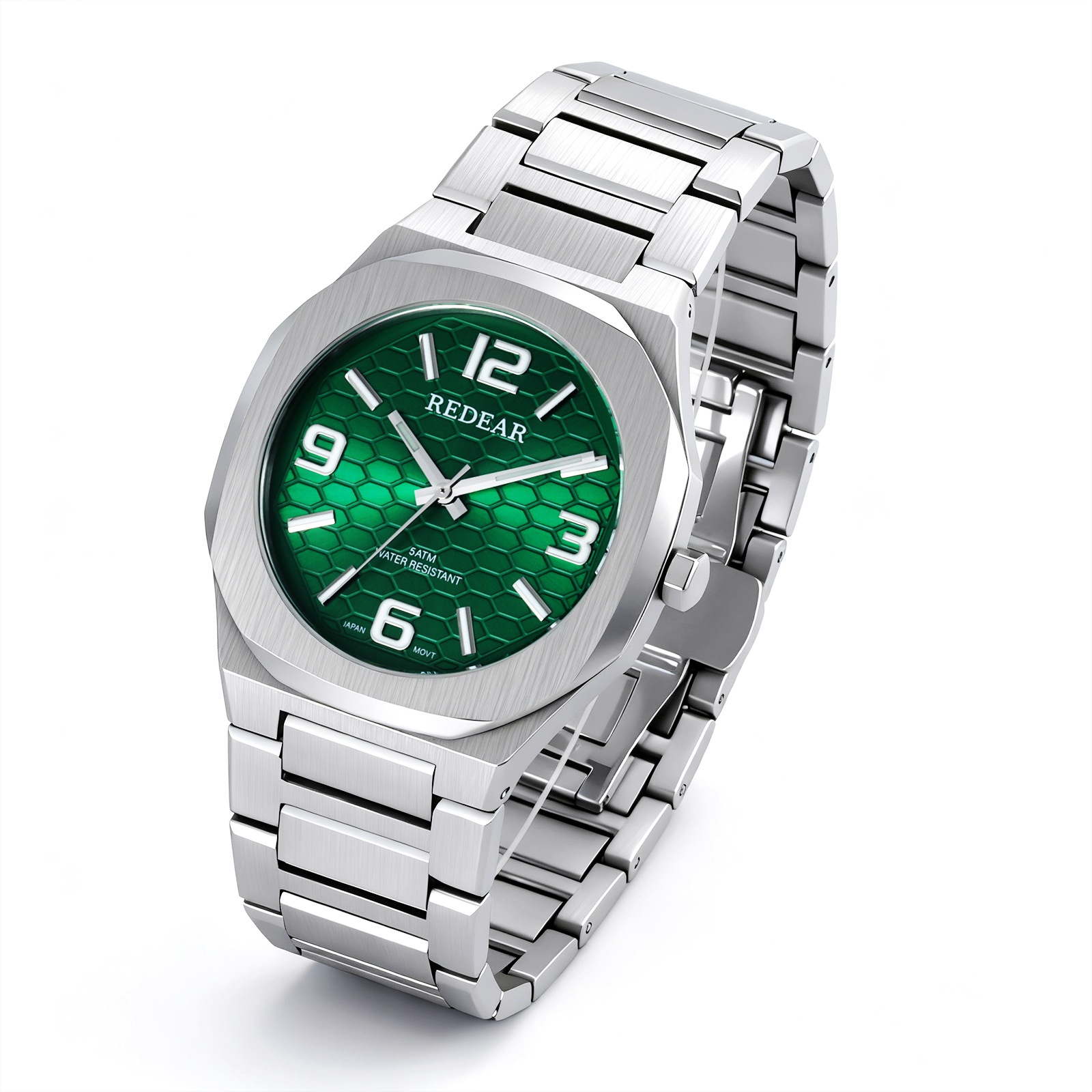 Colors: SJS3735-S02-1—steel case with a silver dial; SJS3735-S02-2—steel case with a light blue dial; SJS3735-S02-3—steel case with a green dial; SJS3735-S02-4—steel case with a black dial; SJS3735-S02-6—steel case with a dark blue dial; SJS3735-S02-9—black case with a black dial and black numerals.