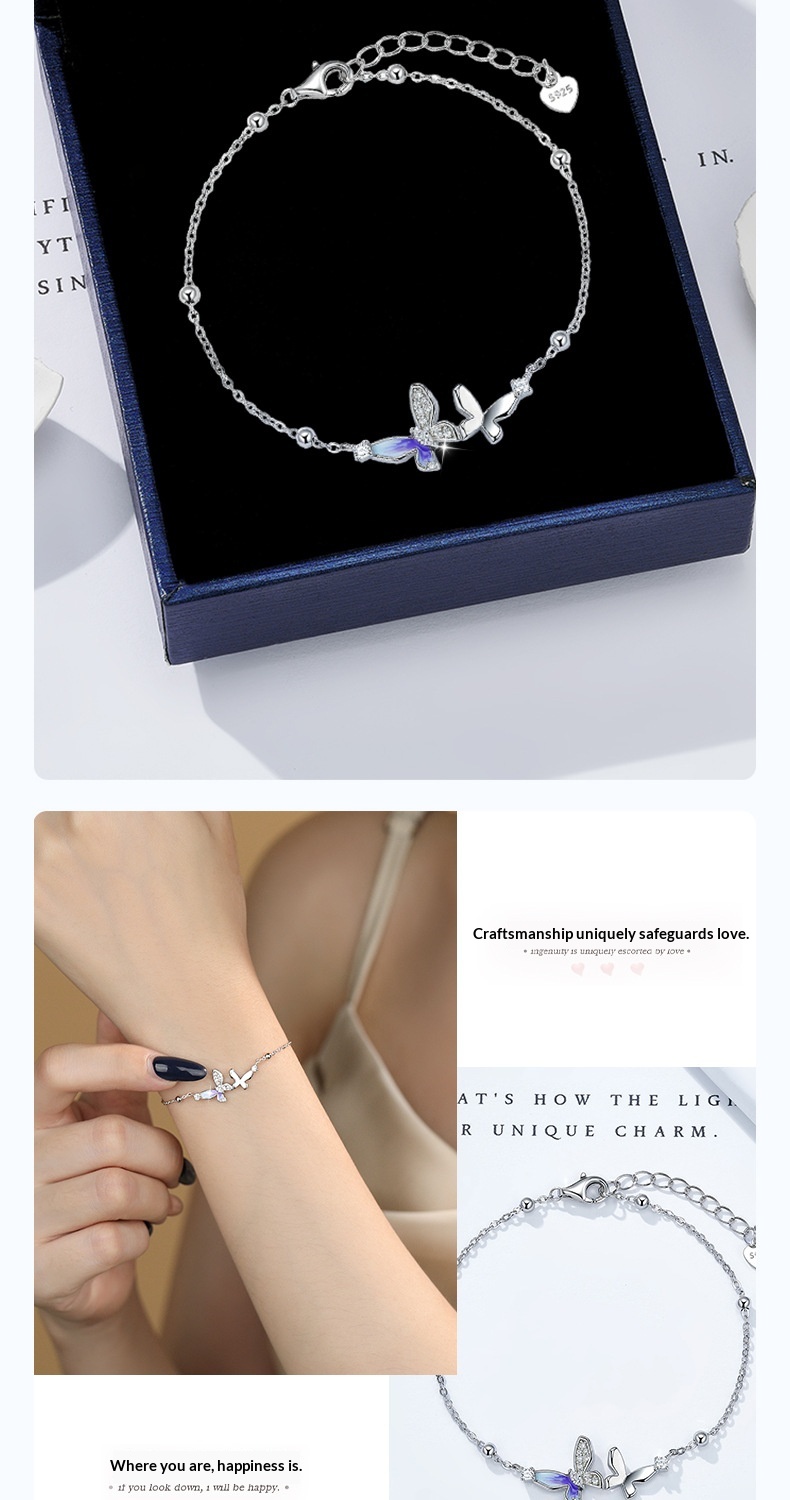 Product information: Processing Technique: Epoxy Coating Target Audience: Women Style: Unisex Material: 925 Silver Purity: 925 Silver Trendy Element: Butterfly